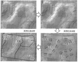 創(chuàng)新園雨水系統(tǒng)規(guī)劃以"自然積存、自然滲透、自然凈化"為核心,取消傳統(tǒng)的雨水管渠集中收集的模式,使區(qū)域內(nèi)的雨水就近下滲及順地勢(shì)排放至下沉式綠地、濕澹等調(diào)蓄設(shè)施,從而實(shí)現(xiàn)雨水的間接利用。自然排水系統(tǒng)如圖9所示。