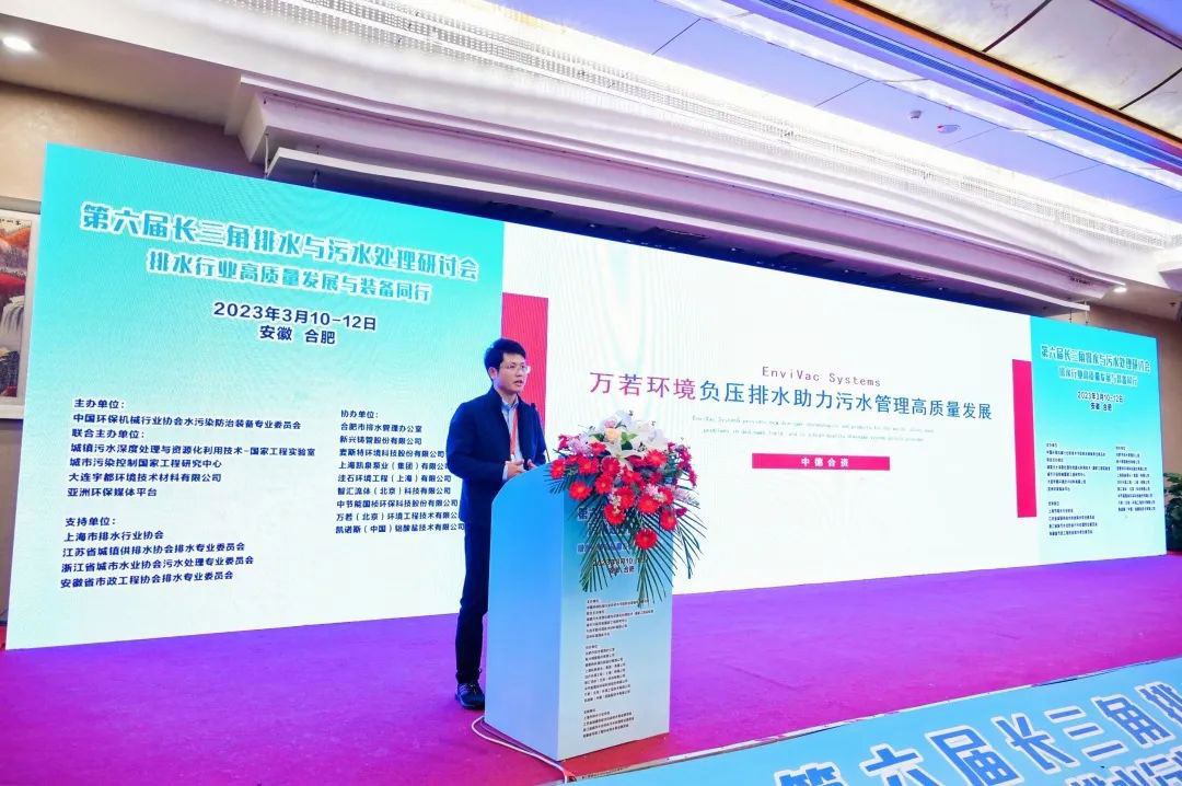 萬(wàn)若環(huán)境副總經(jīng)理許向閣以主題《萬(wàn)若環(huán)境負(fù)壓排水助力污水管理高質(zhì)量發(fā)展》參加了此次議程。